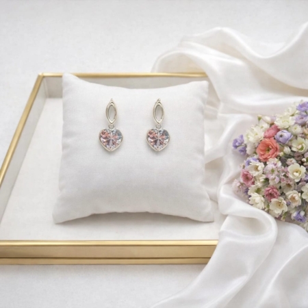 • Brinco Meio Argola Lateral Cravejado Coração