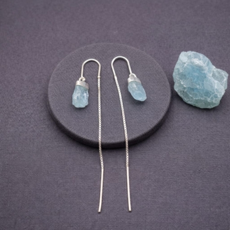 • Brinco Corrente Pedra Água Marinha
