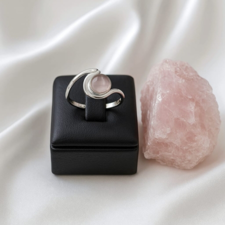 • Anel Onda Com Pedra Natural Quartzo Rosa